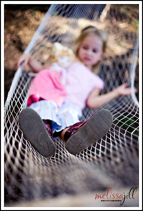 This has to be the cutest shot ever--Aubrey with her little princess doll in a hammock: