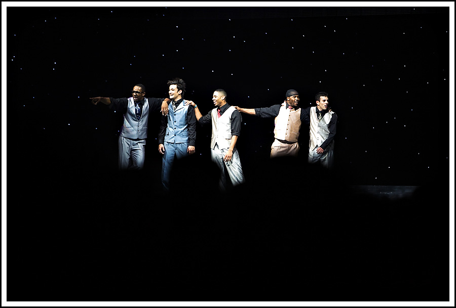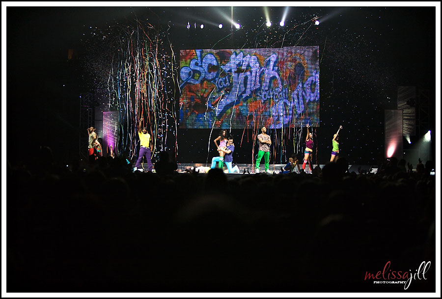 When we sat down in our expensive seats, they also didn't have cup holders so I proceeded to spill part of my cap-less water bottle all over my lap. Fun times. BUT in the end I did get to see my friends. From afar. Here's a shot of the top 5 guys after one of my favorite dances (shot at 200mm):