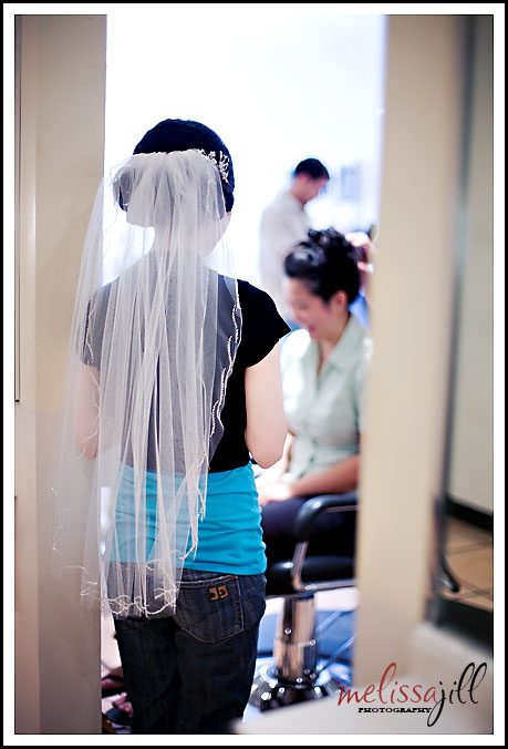Laura and one of her bridesmaids got their hair done on opposite sides of this wall and I love how my fish-eye lens captured all of the action: