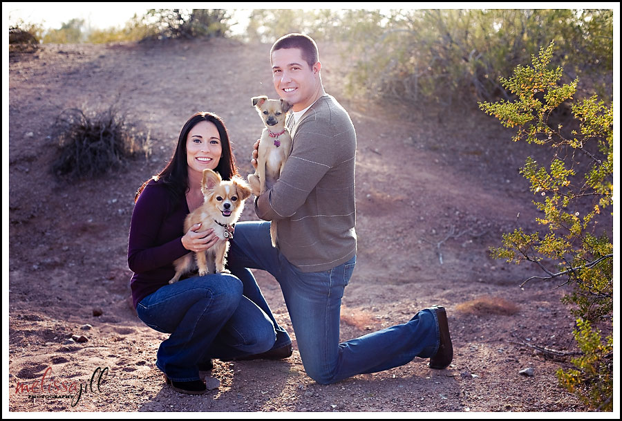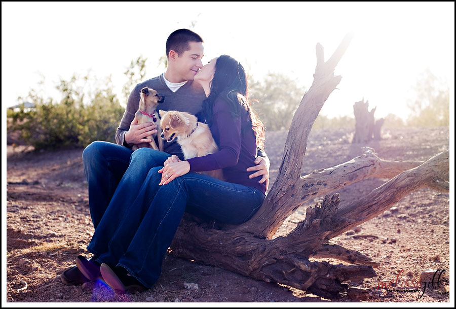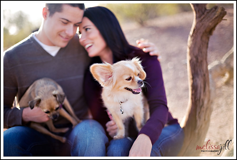 Last night I met up with David and Katie at the Desert Botanical Gardens for their engagement shoot. These two were so much fun to shoot. We started out taking a few shots with their two little dogs--Jackson & Marley--who totally worked the camera: