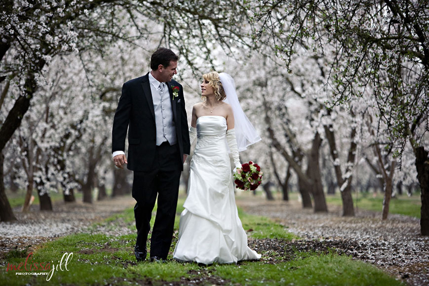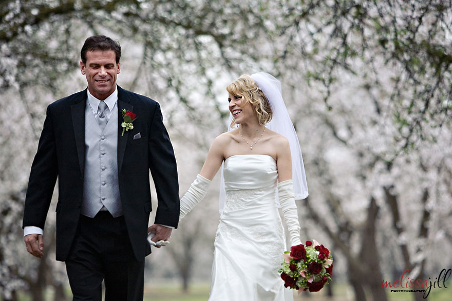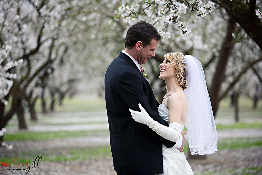 The church Amy and Joel were married in was actually located right outside Modesto in Ripon. And on the very day of their wedding, the town of Ripon held their annual almond blossom festival. It's a big deal there I guess. Driving around the area I couldn't take my eyes off of the beautiful orchards--they were amazing. So after the ceremony we jumped in a car and headed over to an orchard to take advantage of the beauty. We were pressed for time but still were able to get some great shots.
