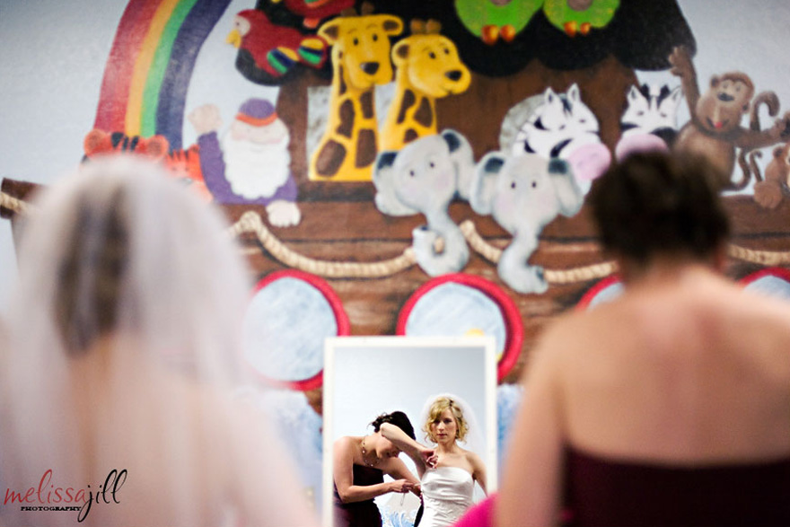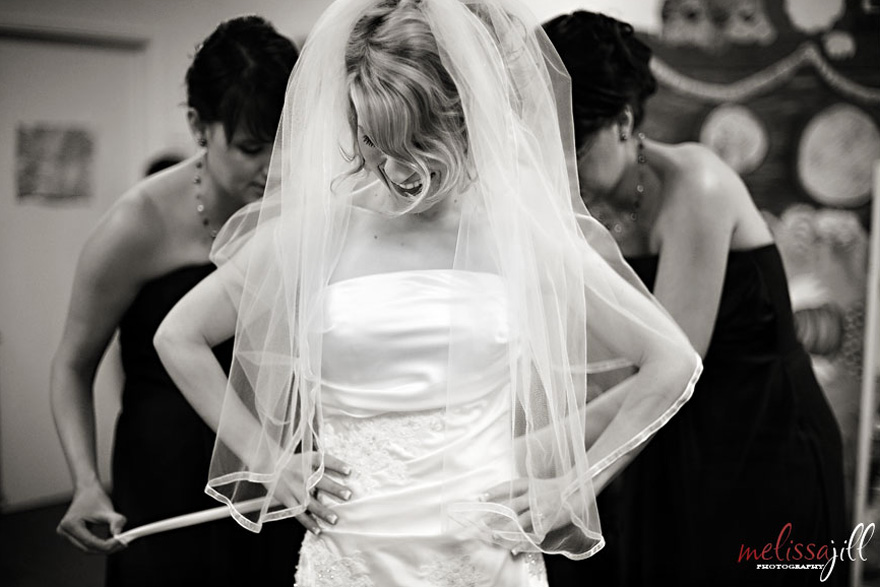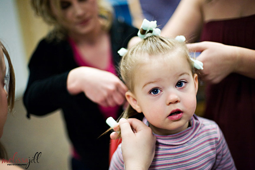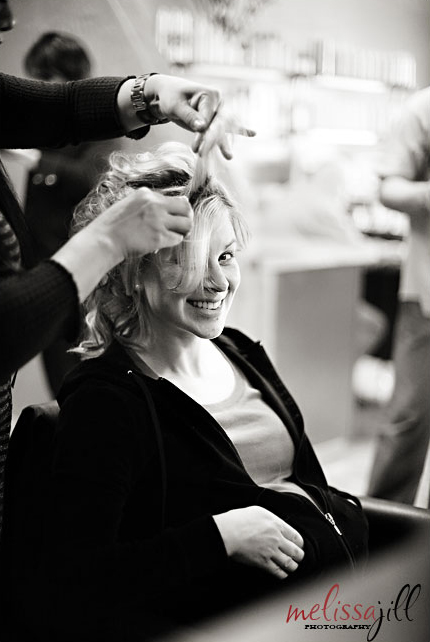The day started in typical fashion with hair and make-up. I caught a cute shot of Amy's sister and matron-of-honor Julie as she got her hair done: