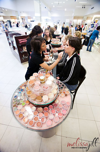 We went to the mall for make-up. Amy had 10 girls stand up with her so there was LOTS of make-up time and I had a little too much fun: