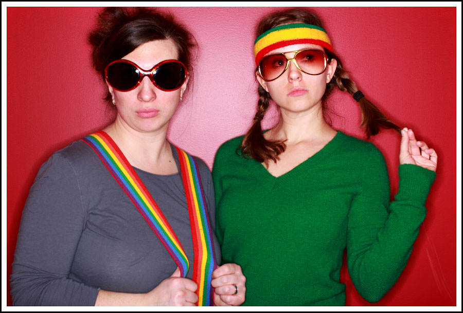 I couldn't get enough of this super-snazzy headband yesterday. Here's Jena and I rocking out the rainbow fashion: