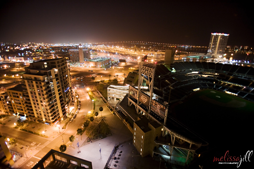 The reception took place at The Diamond View Tower in downtown San Diego on the 15th floor in The Ultimate Skybox directly overlooking Petco Park: