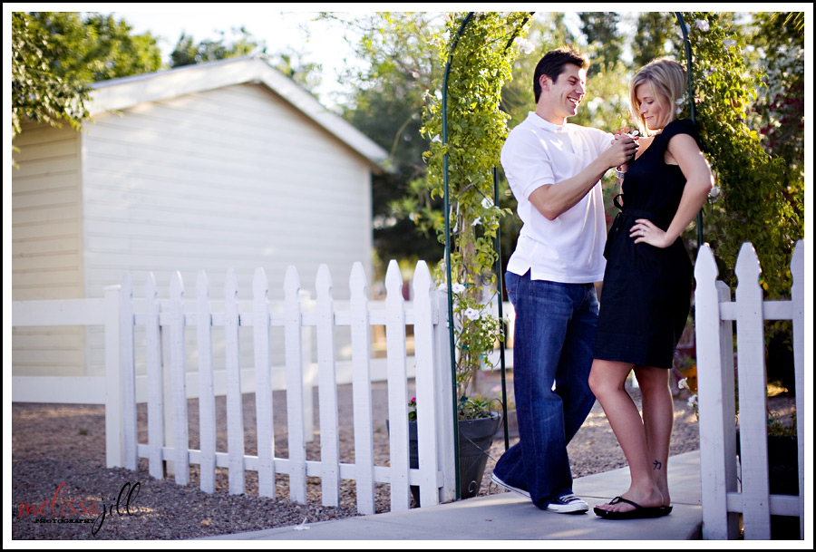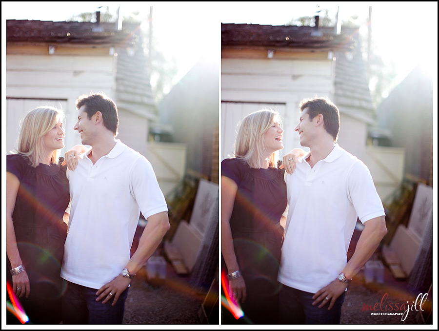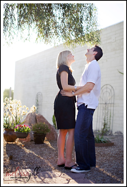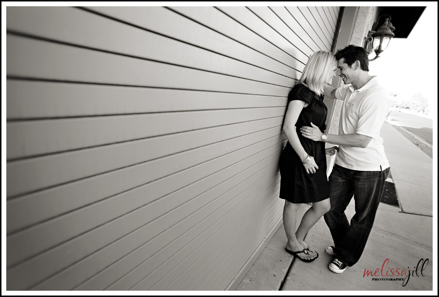 On Monday, I shared on photography topics such as shooting techniques, lighting and post-processing. Then we headed out to Old Town Gilbert for a mock engagement shoot. Meghan and Jeff have been married for one year and they were SUCH troopers to be our models. I found them through a recommendation from my fellow photographer friends Chris & Tammie Billey of Largo Photography who shot their wedding last year. I met Meghan and Jeff for the first time at the mock shoot so those who attended the workshop really got a sense of how I interact with my clients in an engagement shoot scenario. Meghan & Jeff however, didn't get the same true-to-life experience. They had me leading the shoot and 13 other photographers clicking away in the background. It was pretty hilarious to be shooting and hear all the shutters clicking behind me. But Meghan and Jeff were totally cool under pressure.