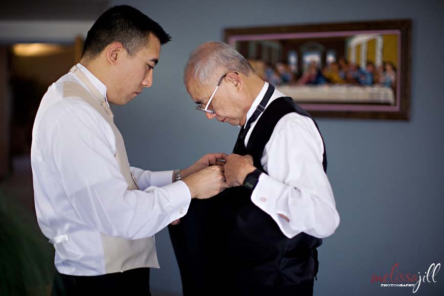 I love this shot of David's brother and groomsman helping his dad with his vest: