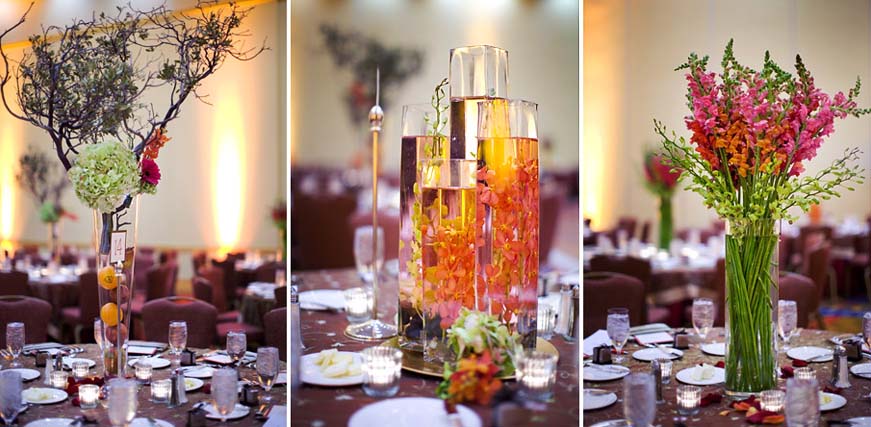 Even more of the florist's handy work--each table at the reception donned one of these three masterpieces: