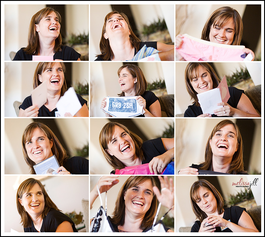 Sarah was so cute throughout her shower. Here's the many faces of Sarah. The middle shot is her being embarassed by the scandalous gifts she was getting from "church ladies":