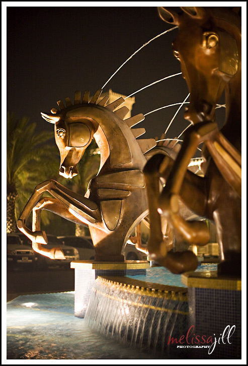 A fountain in front of one of the cool hotels: