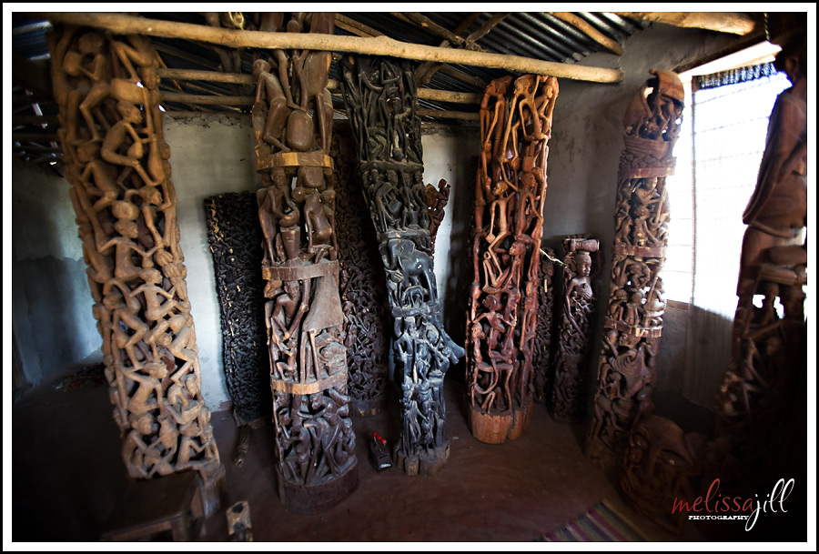The owner of the home where we delivered the filter is an amazing artist. We were just in awe of these intricate wood carvings he created that stood in his front room: