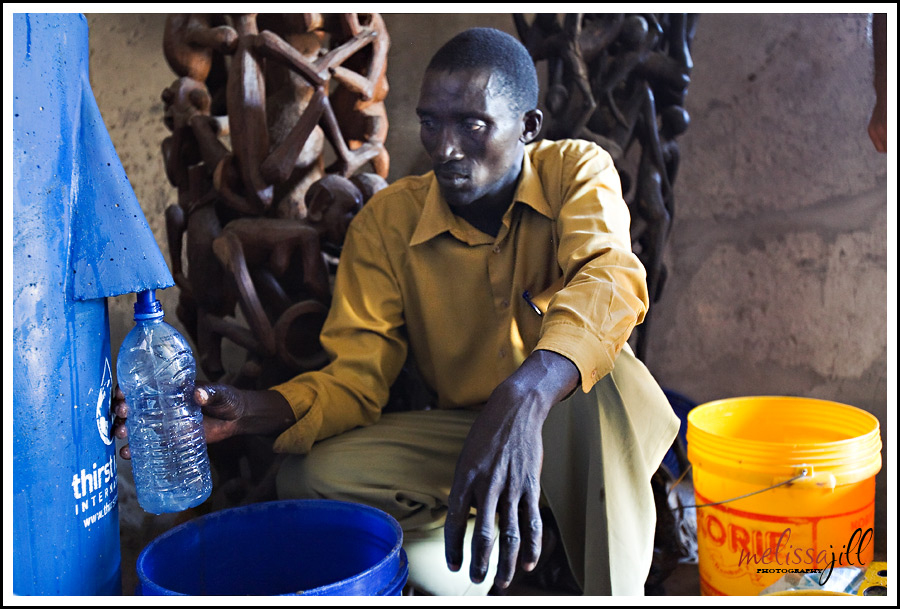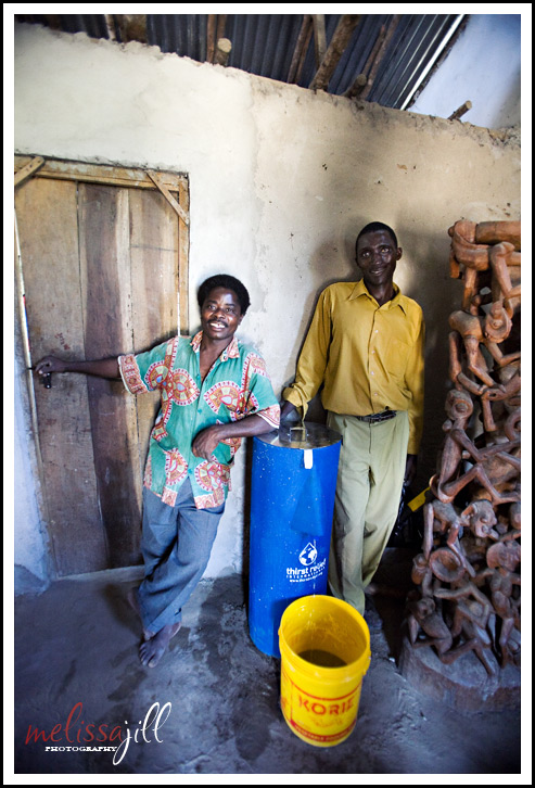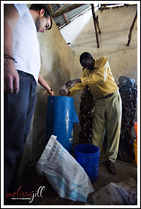We set up the filter in the back hallway of the home. It was a very tight space so Ben Harrison helped while one of the Tanzanians from the workshop who typically does deliveries led the way: