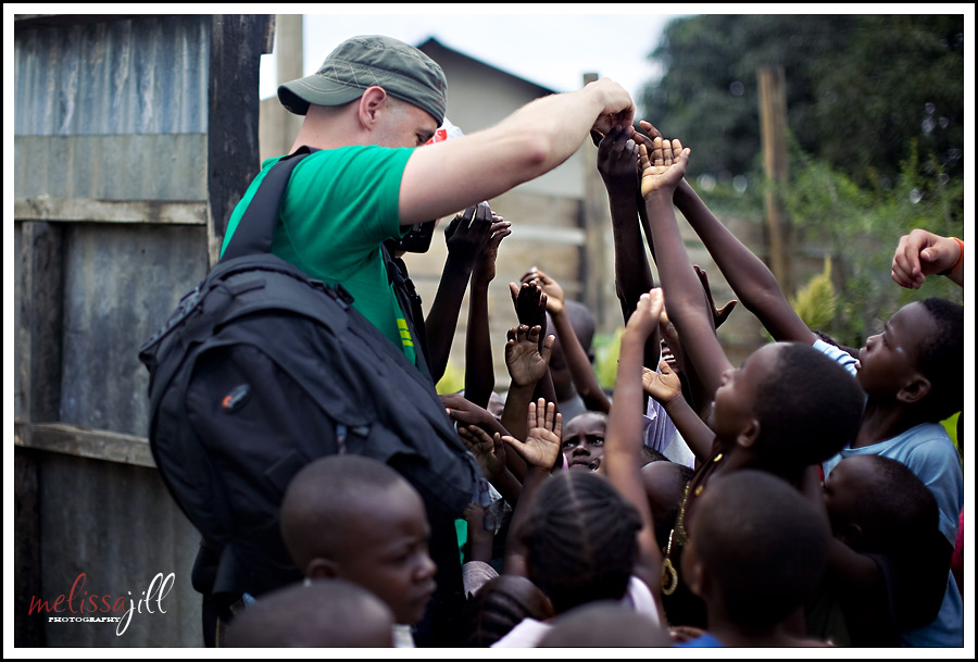 This orphanage experience was completely overwhelming. As soon as we got out of the bus we had kids running up to us, throwing their arms around us like we were long-lost relatives and they didn't stop loving on us from that point on until we had to tear ourselves away and load back into the vehicles. We were able to give the kids some little treats like hard candy, stickers and pens. Here's Shane handing out some candy. It was total chaos:
