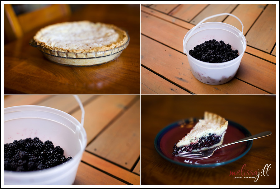 When we brought the blackberries home Jamie's grandma took them and just whipped up a pie. I don't know when the last time was that I ate homemade pie. YUM. Seriously scrumptious. That piece you see on that plate now resides in my belly. And I'm anticipating that another one may join it later tonight.