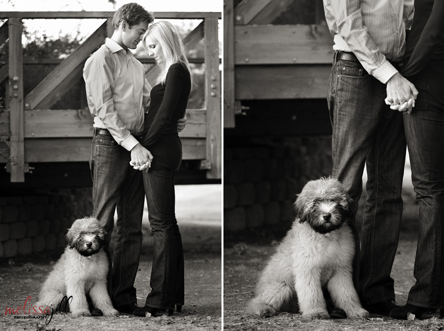 Brian & Heather met and started dating while living in New York City. Brian got a job and moved to San Francisco but their relationship was strong enough to endure the distance. They talked of their desire to get a dog and even settled on what kind they wanted -- a Soft-coated Wheaten Terrier/Standard Poodle Mix: a Whoodle. One weekend Brian flew out to NYC to visit Heather and asked her to meet him in Central Park for lunch. When she arrived, she was met with a hug, a ring and a puppy: the perfect proposal!