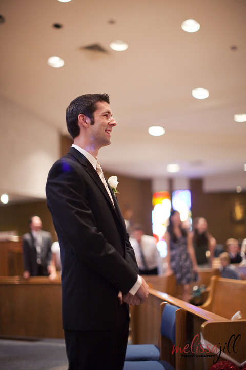 Steve was SO happy watching his bride walk down the aisle toward him.
