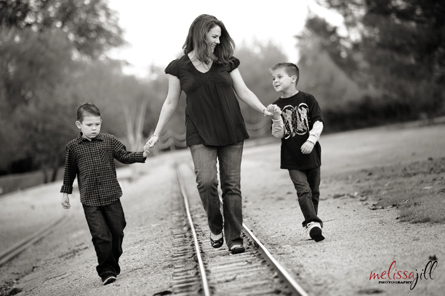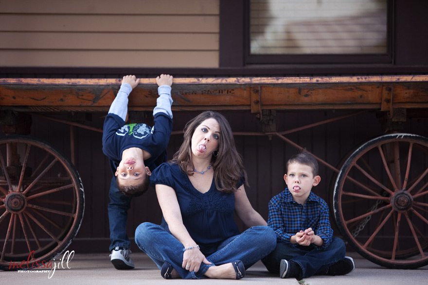 We met up at McCormick Railroad Park because Aidan is obsessed with trains. He loves them. So we thought it would be fun to incorporate the trains and tracks in the shoot. Before I got there they had already rode the train and Aidan was scared because of the noises it made. And he ended up being nervous the entire shoot. So instead of smiling in the above shot, we decided silliness was in order. Sometimes you just need to be silly.
