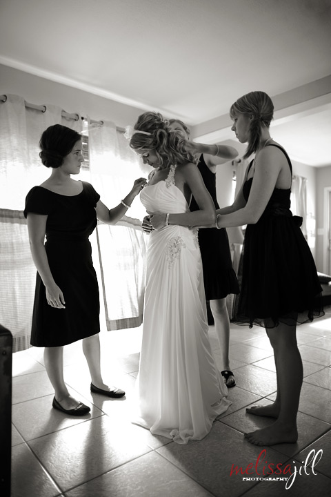 Heaven's three bridesmaids helped her into her dress: