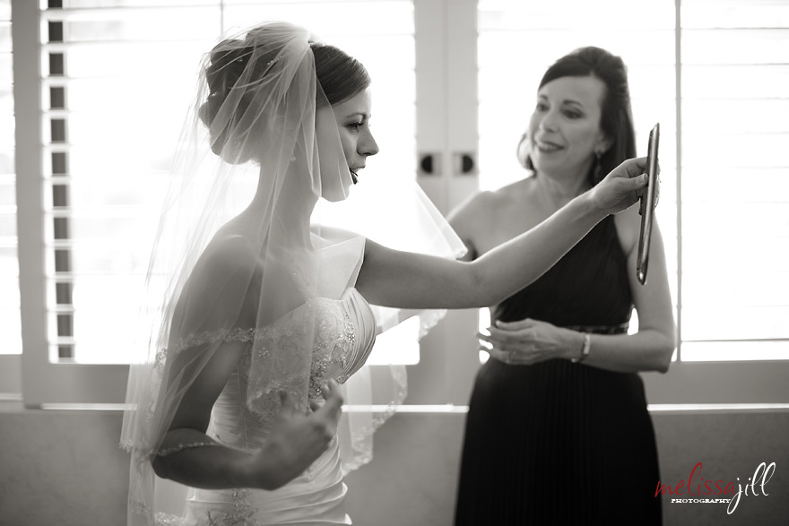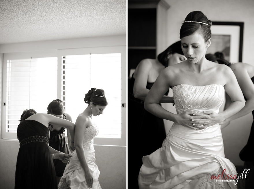 Her mom and bridesmaids helped her into her dress: