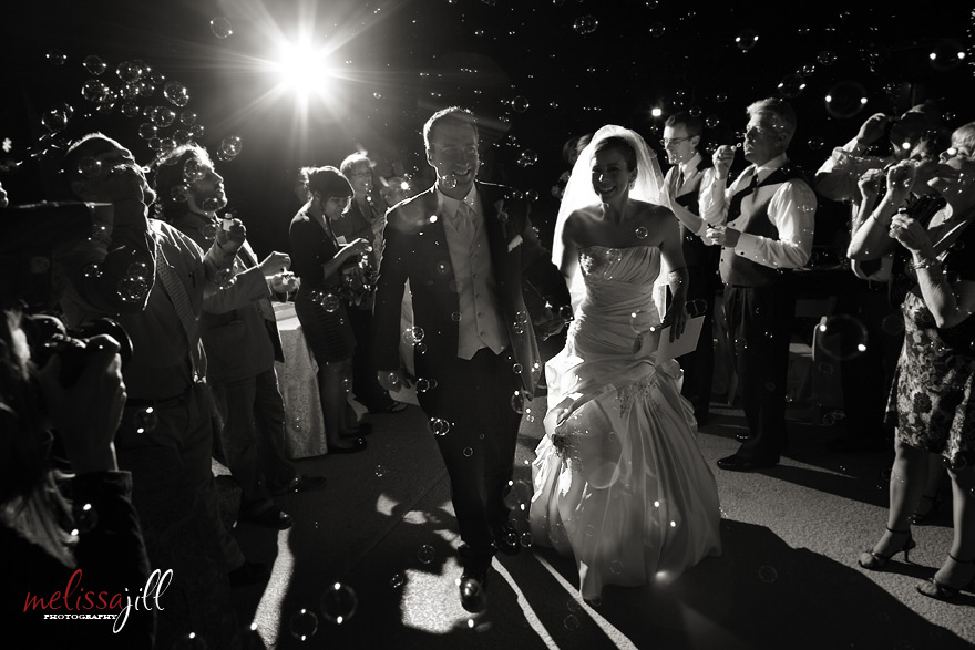 And the couple was sent off through a field of bubbles: