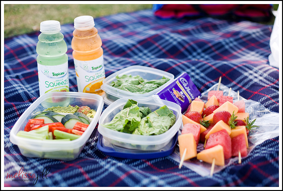 I am really on a roll this week with checking things off my 101 in 1001 list! I wasn't planning on doing this this weekend but Becky and I decided to have a picnic today. I couldn't think of a more perfect place or a more perfect person to have a picnic with. Becky is THE most organized, efficient, innovative, detail-oriented planner that I know. I know many of you think of me as organized but she puts me to shame. She definitely lives by the motto--"Anything worth doing is worth doing well." She took the picnic idea and ran with it. I basically did nothing but enjoy the fruits of her labor (literally). Well I did put a few pieces of fruit on the skewers--but again BASICALLY nothing. Here's the wonderful lunch she put together which consisted of veggies and guacamole, chicken salad lettuce wraps and fruit kabobs. Plus she new me well enough to get a chocolate candy bar with almonds for dessert.