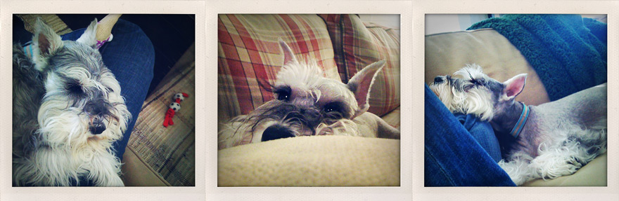 Dixie is a love. But she's a typical terrier - always in need of SOMETHING. The above photos are all documentation on my iPhone of many said instances when she was in need. When she needs something, I'm made aware of it. She jumps up and down, nose-nudges or paws at me. She will even paw my hand away from my laptop or just plop her head down on it as if to say - "Why are you so enthralled with this thing? I'm way cuter and snugglier." She's like a toddler constantly pulling at my pant leg, asking for one thing after the next.